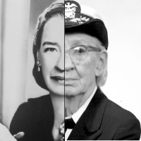 Write code to merge two images of the computer scientist Grace Hopper. In 1952, Grace Hopper and her team created the first compiler for computer languages.